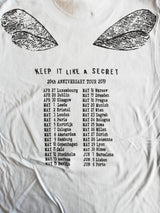 Keep It Like A Secret design on a light blue Gildan Softstyle t-shirt with 2019 European tour dates on the back. 100% cotton.