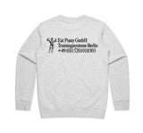 Eat Pussy GmbH design with front and back print on an ash grey Gildan Heavy Blend Crew Neck Sweatshirt.