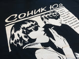 Printed on a black Gildan Heavy T-shirt. 100% cotton.